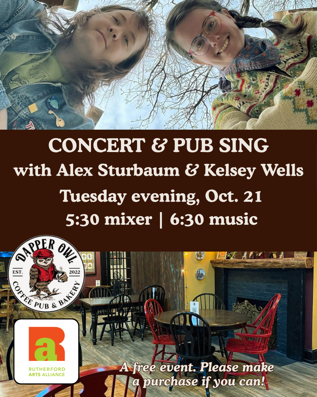 October 21 @ 5:30 pm - 6:30 pm Concert & Pub SING – RAA https://www.rutherfordartsalliance.org/events/2025/october-arts-mixer-pub-sing